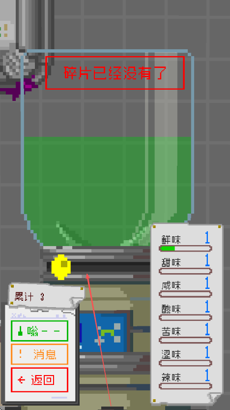 1、进入游戏看到提示碎片已经没有了,关注左侧累计数值,留意下方操作按钮如嗡,消息,返回。