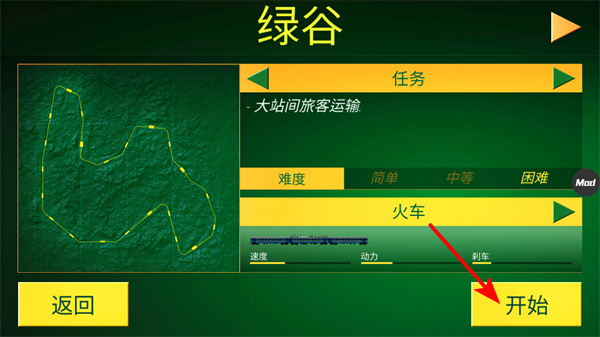 1、如绿谷和任务难度,点击开始按钮可开启火车运输任务,需结合自身操作水平,建议从简单难度入手。