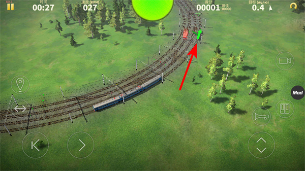 3、遇到轨道岔口时,需注意绿色箭头指示的轨道方向,行驶时提前规划路线,避免火车驶入错误轨道。