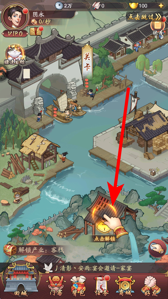 2、先解锁产业,比如客栈,点击对应建筑的解锁按钮,就能开启产业经营,为后续赚钱打基础。