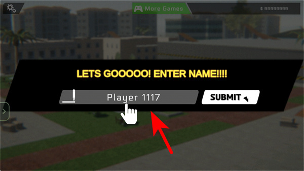 1、进入游戏界面后,在输入框确认昵称后点击SUBMIT按钮,这是进入游戏的关键操作,准确点击才能进入赛车场景。