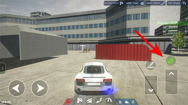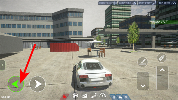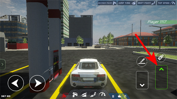 2、游戏中依照箭头指引,点击加速按钮操控赛车前进,朝着城市赛道的目标区域行驶,注意观察道路布局规划路线。