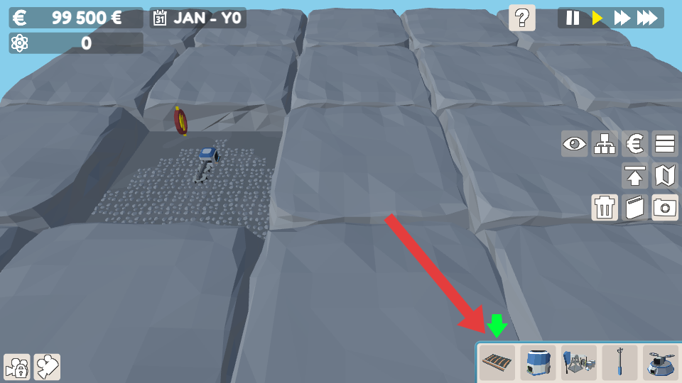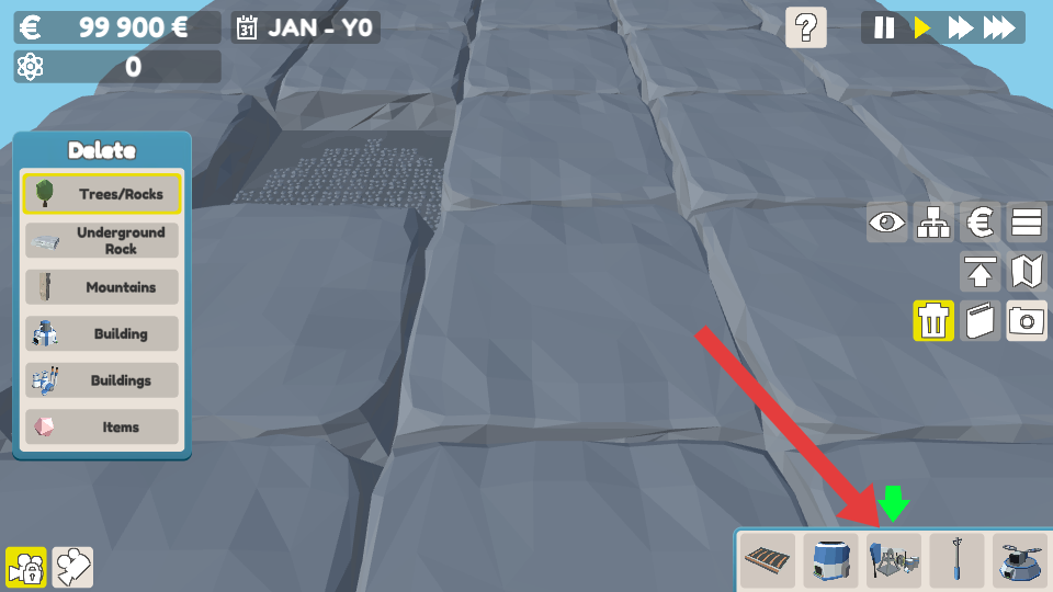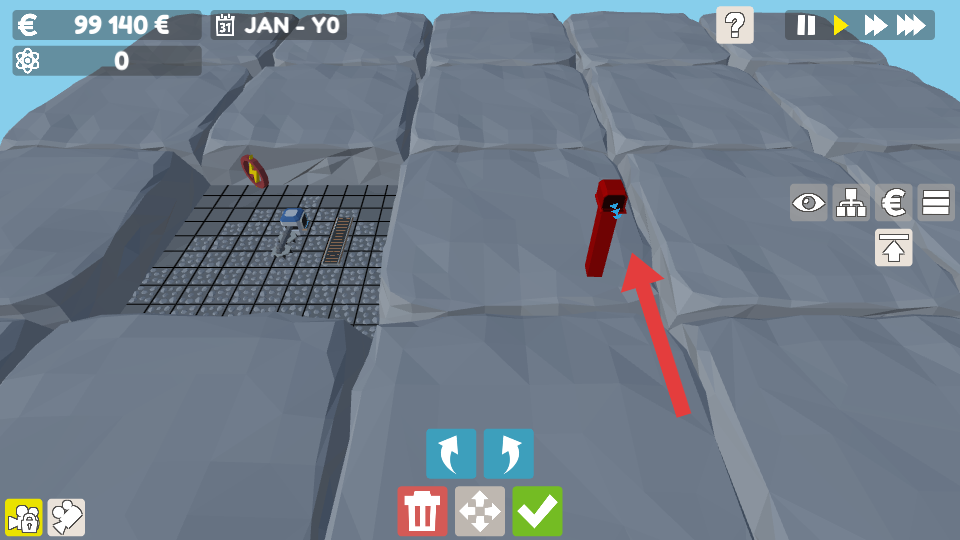 1、资源勘探与障碍清除:查看地图找到较暗的资源点,其下方藏有矿石与流体,点击地下按钮进入地下区域,通过垃圾桶按钮或拖动选择框删除石头、树木障碍。