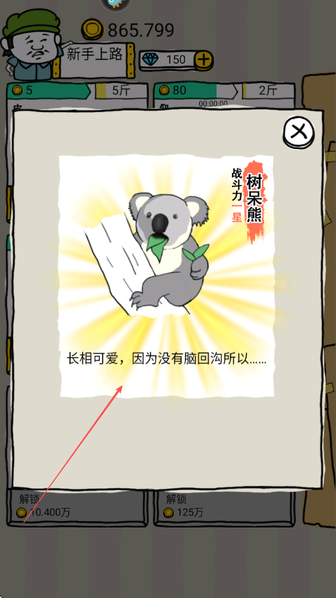 4、攒够720金币点击树呆熊解锁区域成功解锁后查看树呆熊战斗力一星等相关信息。