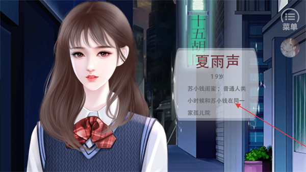 4、查看界面呈现的夏雨声角色信息,了解其身份背景,以此继续推进该游戏的剧情内容。