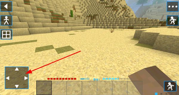 1、通过方向按钮控制角色在沙盒场景中移动,探索周围区域,寻找可交互的物品或资源。