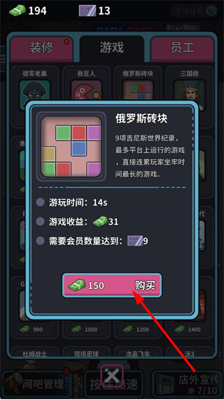 4、确认当前拥有的资金满足购买需求,点击详情窗口中的购买按钮,消耗对应货币即可获取该游戏。