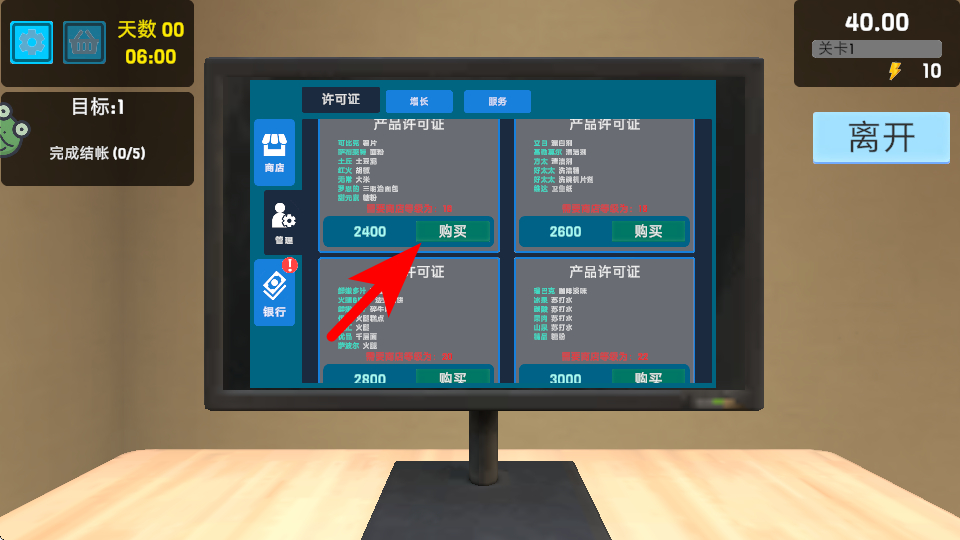 4、点击开始结账按钮,这是完成商品结算的重要操作,结算后可完成当前的采购流程,推进完成结账的目标任务,积累经营进度。
