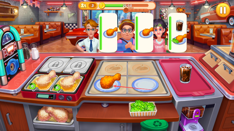 1、多独立餐厅解锁体系:设置七个风格与定位不同的独立餐厅,每个餐厅对应独特的顾客群体与食物品类,玩家需通过经营前一餐厅积累经验与资源,逐步解锁后续餐厅。