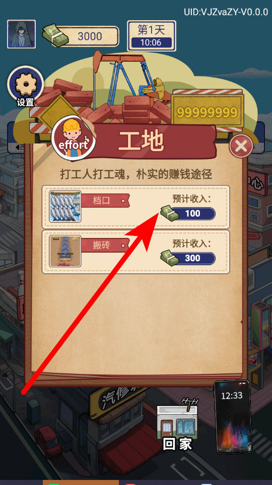 4、不同打工场景有不同的预计收入,可根据情况选择,努力完成各个场景的任务,逐步积累更多财富。