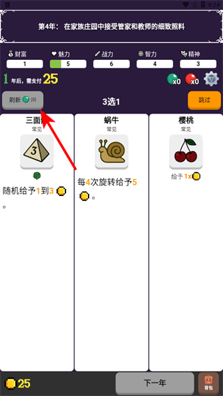 2、合理使用刷新功能,功能使用是优化选择的核心步骤,使用后可更新可选符号,增加获取稀有资源的概率。