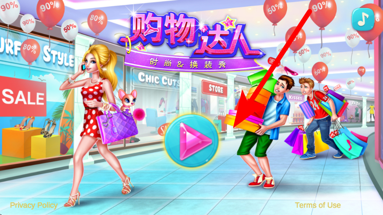 1、新手玩家首先开启游戏,点击带有购物场景界面中的开始按钮,进入购物女达人的游戏世界中,开启时尚换装的旅程。