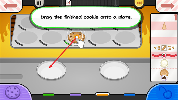 7、此时滑动你的饼干到盘子之中,以完成装盘;