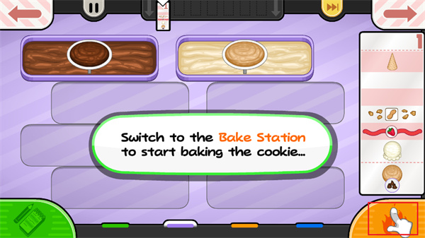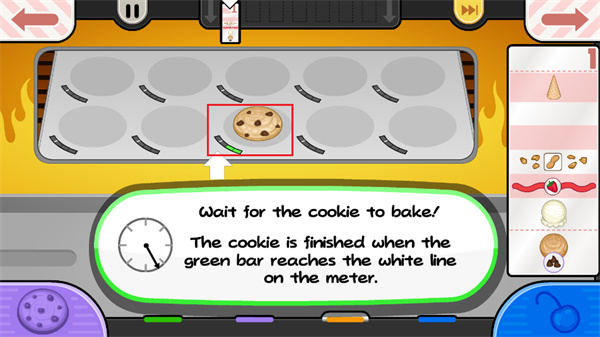 6、当饼干烘烤完毕后,饼干的旁边将会显示出绿色的光条,点击即可;