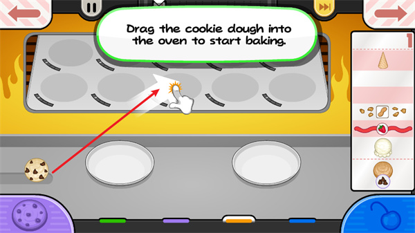 8、最后点击盘子下方的绿色小按钮即可完成饼干的烘烤。