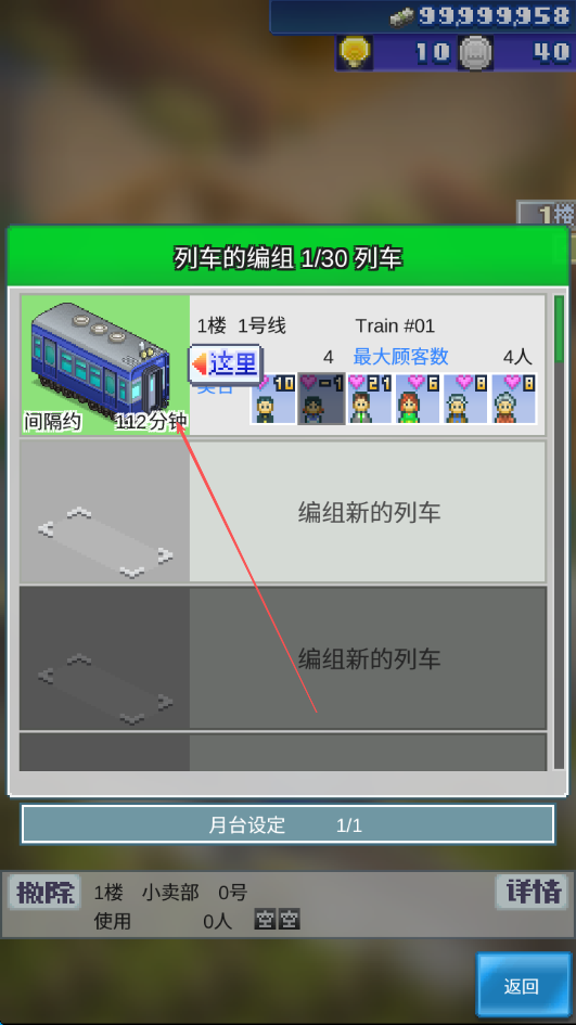 3、在列车编组界面,查看列车信息,如最大顾客数等,点击这里进行编辑。