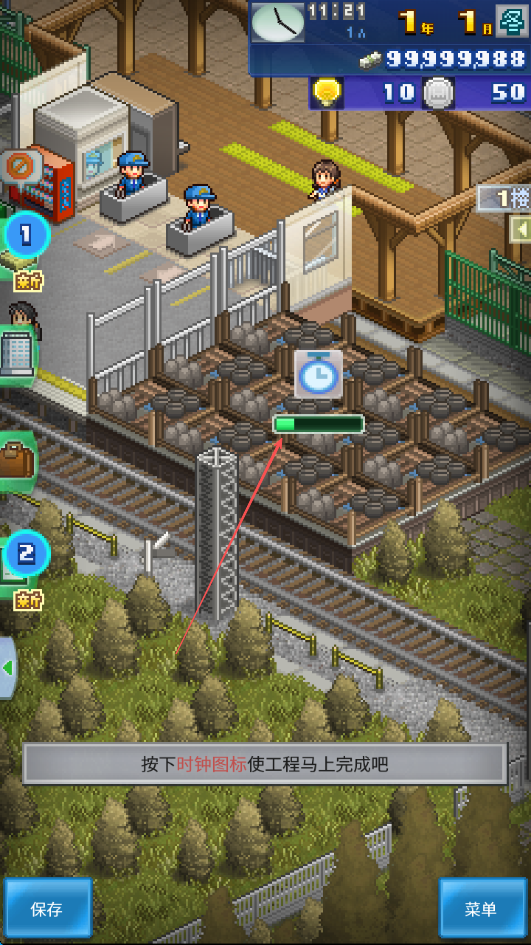 1、进入游戏看到界面提示按下时钟图标使工程马上完成吧,点击时钟图标加速工程进度。