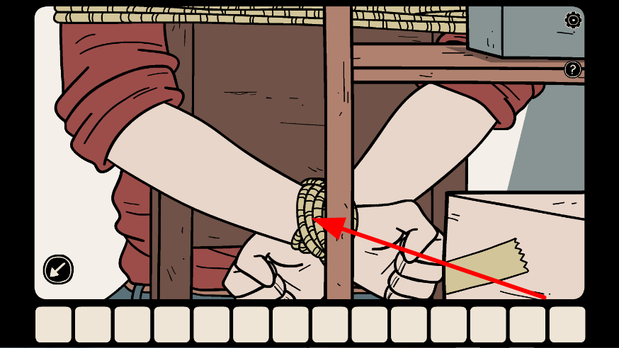 1、初始处于被绳索束缚的状态,需专注于绳索,通过操作解开束缚,为后续寻找线索道具、切换房间等操作创造自由移动的条件,开启逃脱进程。