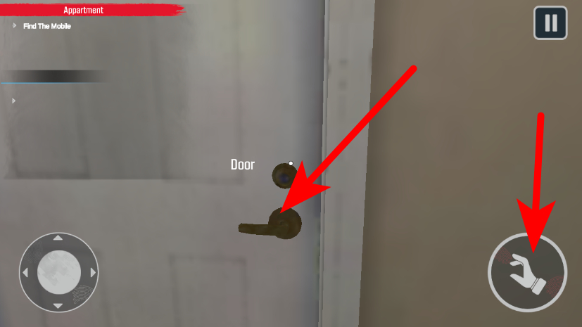 2、在门的位置处,点击门把手,再点右侧交互键,打开房门进入。