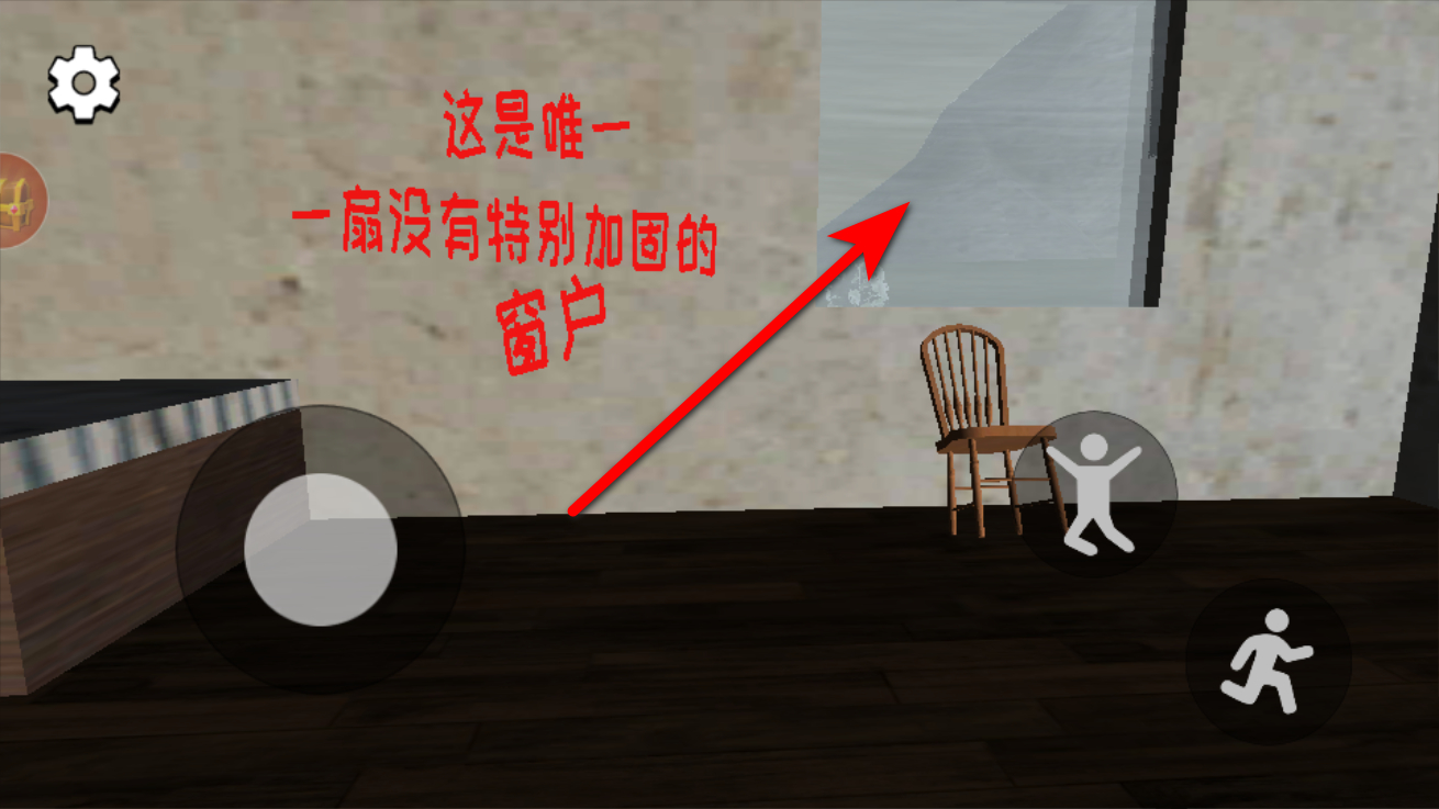 2、在屋内寻找那扇没有特别加固的窗户,它是重要的逃生线索,仔细查看周围,能发现窗户的位置比较显眼,方便后续利用。