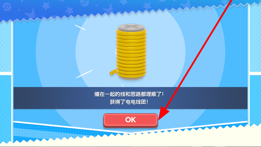 4、成功完成解谜后,会获得道具,如电电线团等,获得道具后点击OK,这些道具可用于后续冒险,助力更好地探索与互动。