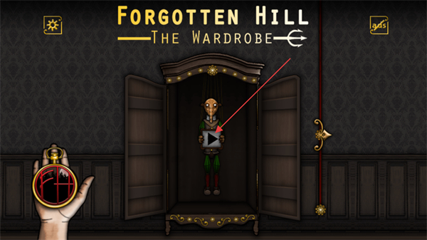 1、进入遗忘之丘魔衣橱的游戏界面后,找到衣柜内木偶所持的播放按钮并点击,即可开启该游戏的相关剧情流程。