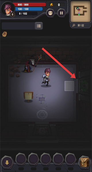 3、进入第1层场景后,点击屏幕操控角色移动,向场景内的上锁区域移动。