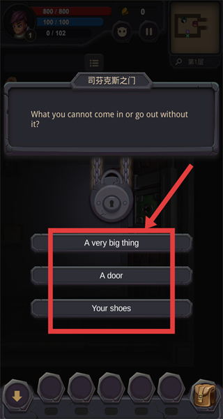 4、遇到“司芬克斯之门”的问题时,从选项中选择正确答案,即可进入下一个房间。