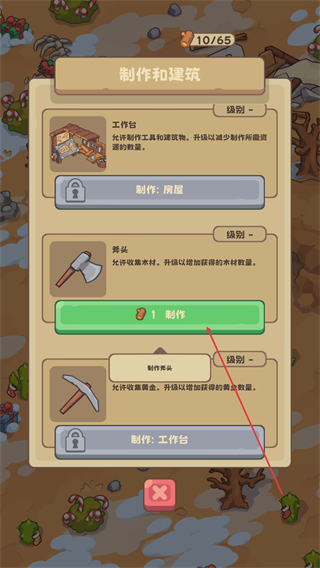 2、进入制作和建筑界面,选择斧头点击制作,消耗材料制作伐木工具。