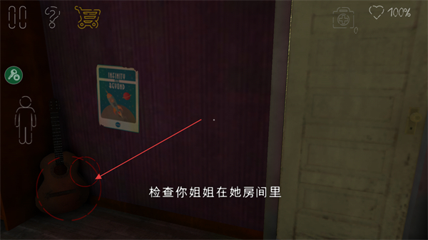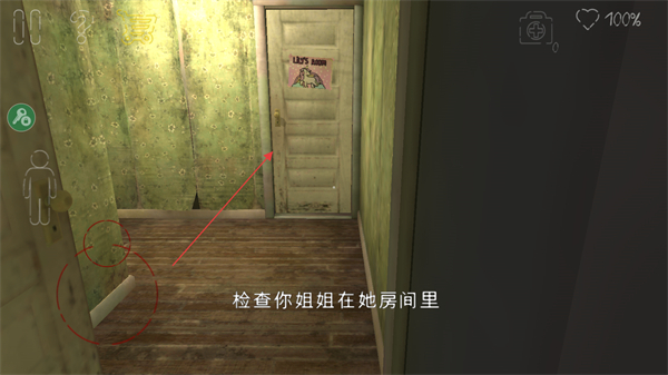 1、按提示检查你姐姐在她房间里,操控角色移动到目标区域。