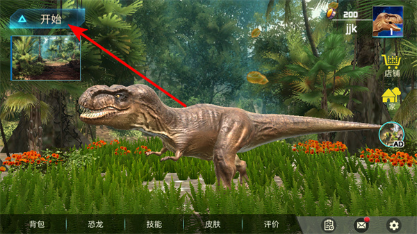 1、在恐龙冒险游戏中,点击开始按钮进入游戏,这是开启恐龙冒险之旅的关键操作,进入游戏主流程。