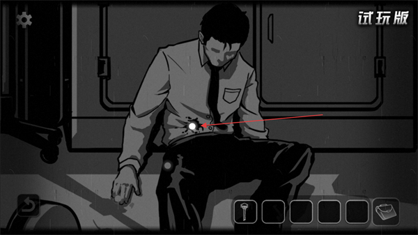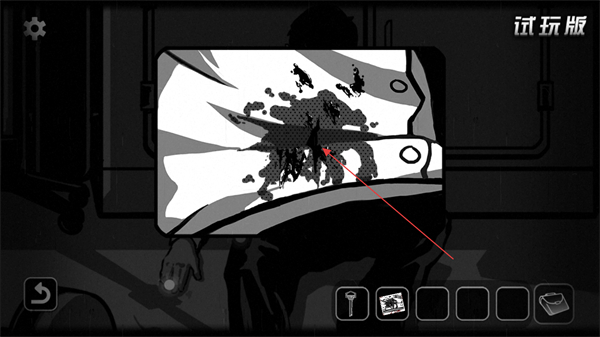 1、观察场景中受伤的人物,点击其腹部伤口区域,获取线索。