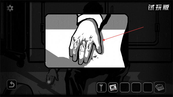 3、检查人物的手部,寻找手掌上的线索痕迹,积累证据。