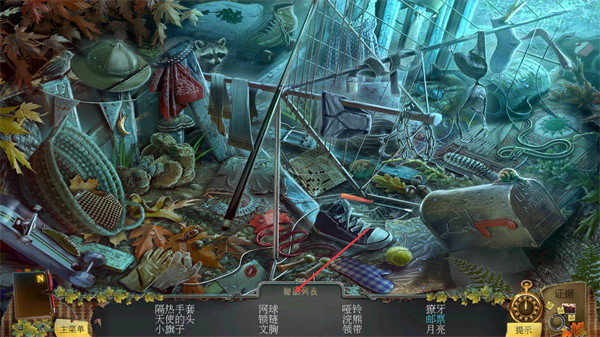 2、进入找物场景后,查看界面下方的物品列表,在场景中找到列表内对应的物品如网球、哑铃等,点击该物品即可将其收集,完成列表物品收集可推进关卡。