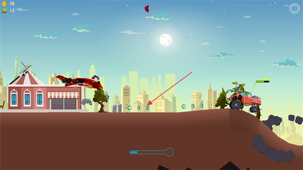 1、勇士骑着龙在追逐BOSS的路上吃到蓝色硬币,可以短暂提高龙的前进速度帮助勇士完成对BOSS的击杀。