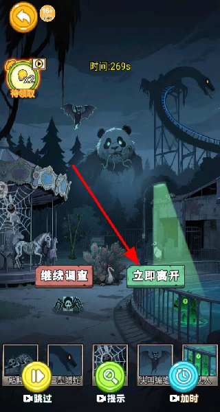 4、在调查结束后慎重选择继续调查或立即离开,做出恰当选择可顺利通关,进而解锁更多新的游戏内容。