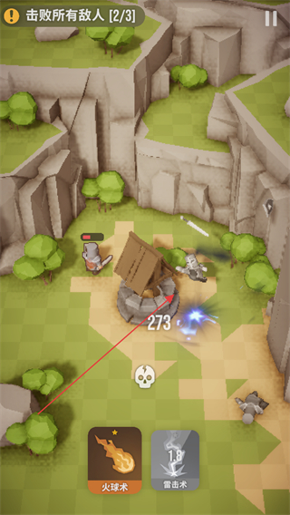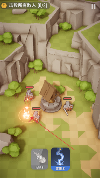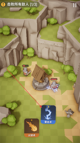 1、在关卡中选择火球术攻击敌人,推进击败所有敌人10/3的目标,削减敌方数量。