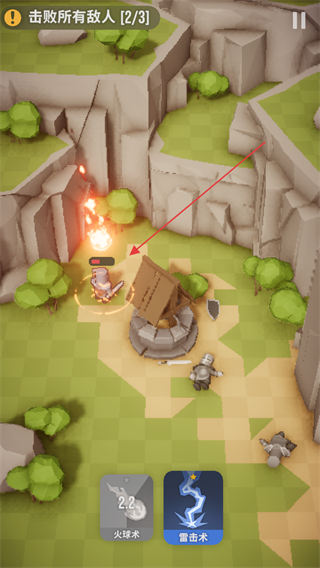 4、切换回火球术攻击最后一名敌人,继续推进击败进度,完成关卡目标。