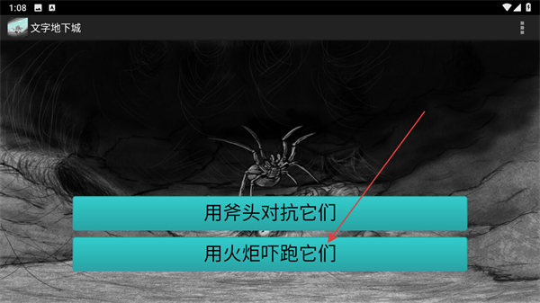 3、遇到蜘蛛类敌人时,可选择用斧头对抗它们发起攻击,或选用火炬吓跑它们规避战斗推进流程。