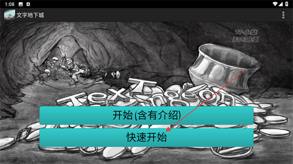 1、进入文字地下城启动界面后,可选开始含有介绍选项了解玩法,或点快速开始直接进入地下城探索进程。