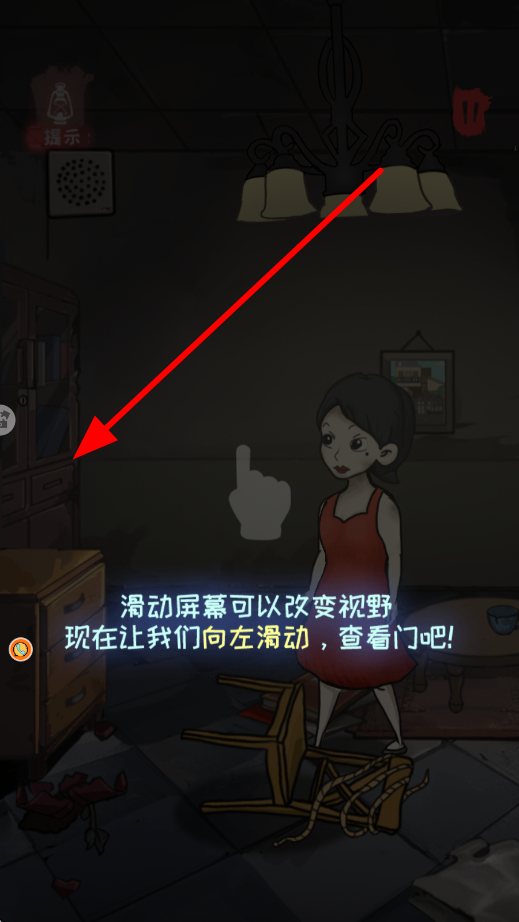 3、通过滑动屏幕可以改变视野,需根据提示,向左或者向右滑动,查看不同区域,从而寻找更多解谜相关的元素与线索。