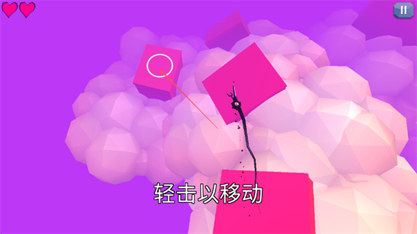 1、轻击屏幕控制触须精灵在粉色方块间移动,移动时需注意方块的位置和距离,避免掉落。
