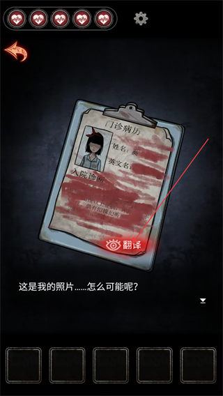 3、查看获得的门诊病历,看到界面显示的对话后,点击界面中的翻译按钮,解析病历上的内容以获取线索。