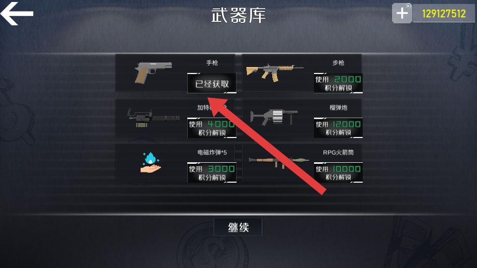 1、进入射击类游戏后,先前往武器库界面,查看手枪、步枪等武器的解锁条件,若当前有可直接使用的武器,点击装备按键完成武器配置。