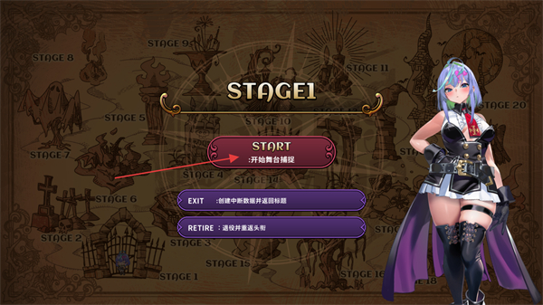 2、进入关卡选择界面,选定STAGE1后,点击START按钮即可进入该关卡开展挑战。