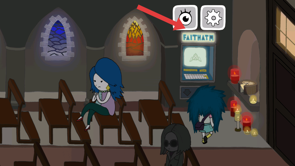 2、与教堂内角色对话时,留意之前说过的台词,对话后检查角色周围的区域,点击眼睛的图案进行查看。