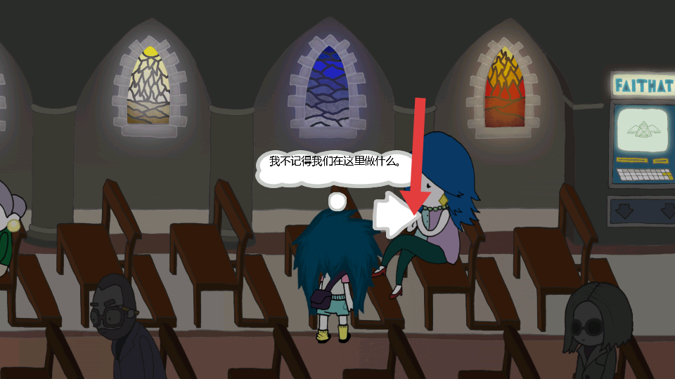 3、教堂探索与剧情推进:进入教堂后,向右走到最里面与人对话并选择选项,获取表格;向左移动到忏悔室,表格放入触发剧情。