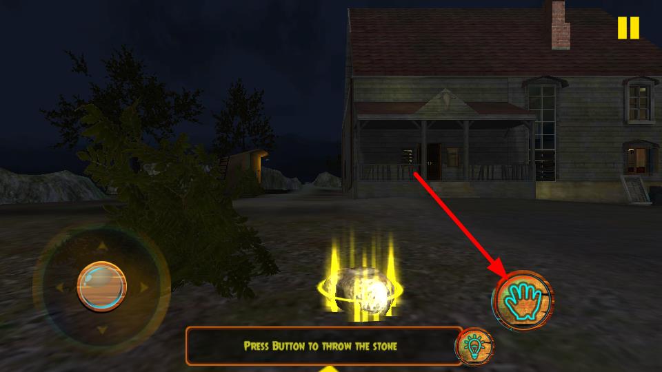 2、点击右侧手掌图标按钮,可投掷石块,利用石块可触发机关或攻击目标,是游戏中的重要交互操作。