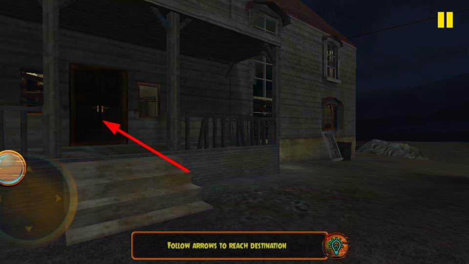 4、跟随箭头指引,向房屋大门方向移动,按照箭头指示的路径前进,可到达目标地点,推进游戏剧情。