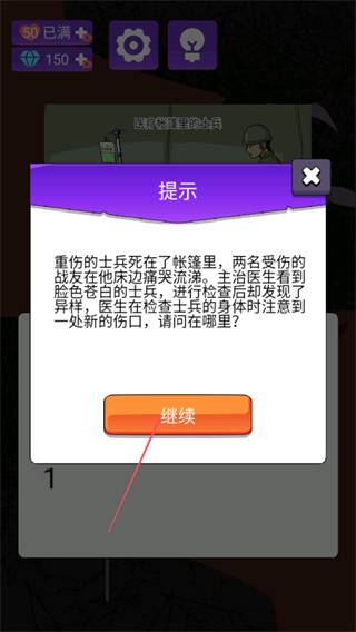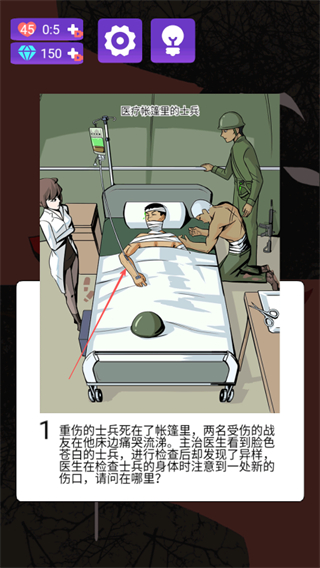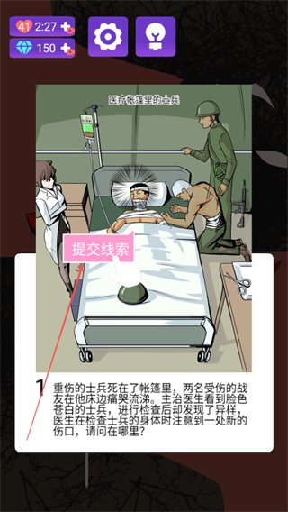 1、阅读提示内容,了解案件背景,明确需要寻找的线索如士兵的新伤口。